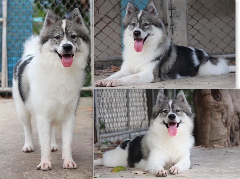 พ่อพันธุ์ อาปาเช่ เพศผู้ สีขาว-เทา ลูกพ่อพันธุ์ไทยแลนด์แชมป์ Th.Ch.โตโน่ กับแม่พันธุ์ไทยแลนด์แชมป์ ถ้วยพระราชทานฯ Th.Ch.บิวตี้ ขนดี โครงสร้างใหญ่ กระดูกใหญ่ เคลื่อนไหวดี จิตประสาทนิ่ง ใจดีไม่ก้าวร้าว