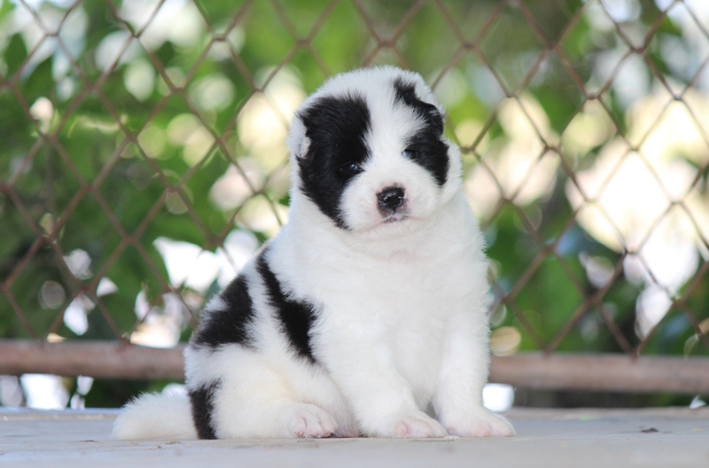 เพศผู้ สีขาว-ดำ เกิด 1 พ.ย.60 (ในรูปอายุ 25 วัน) ผลงานของพ่อพันธุ์"โชกุน" กับแม่พันธุ์"มอลลี่"